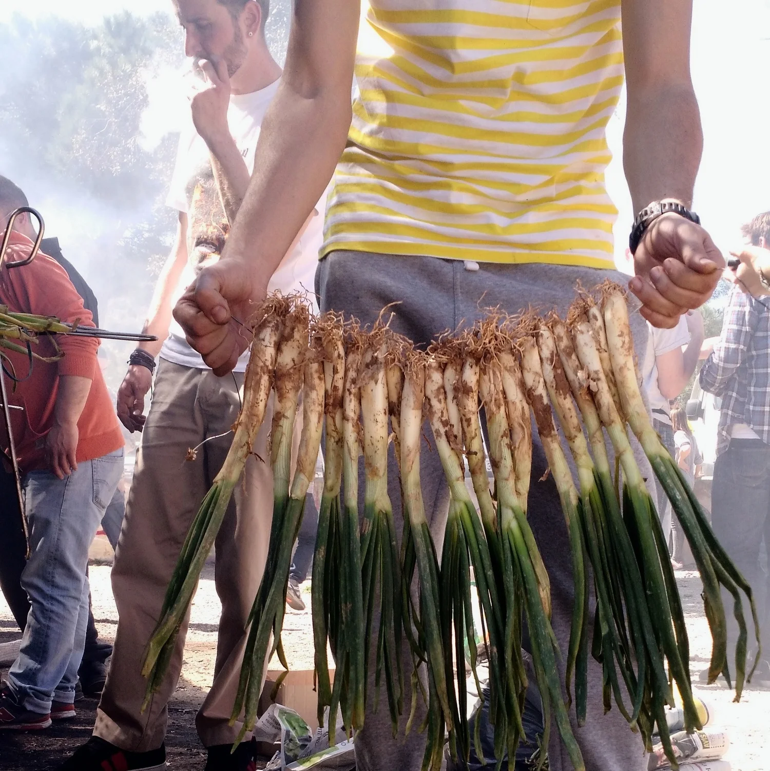"Släpp de grillade smålökarna fria, det är vår!" Ett katalanskt vårtecken är sannerligen dessa "calcots", som skalas och doppas i romanescosås. Slemmigt men mättande!